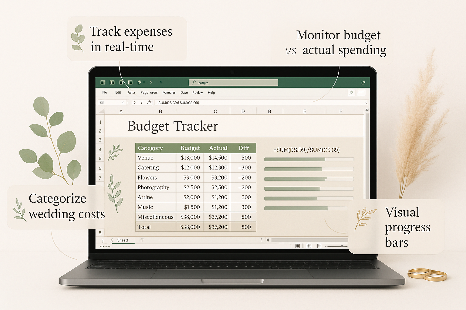 This exclusive bundle doesn't just include elegant invitation templates and decorations, but also offers advanced financial management tools through professional Excel files.